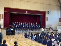 7:00集合、係の司会で出発式を行いました。北條先生の「楽しむぞー!」の号令のもと全員で「おー!」と気合いを入れ、学校を出発しました。欠席者はなしです。
