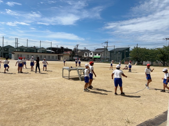 すっかり秋めいてきました。6年は運動会を視野にダブルダッチの練習です。