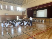 各クラスから出てきた実行委員の人がダンスを教えています。