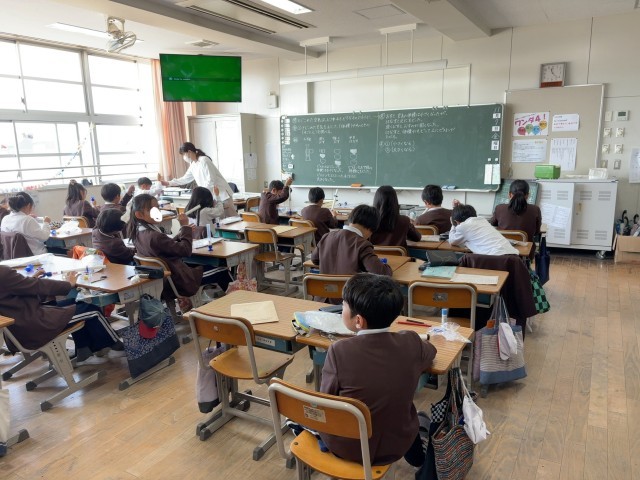 水の場合と比べています。どちらが縮みやすいか。楽しく実験をしています。