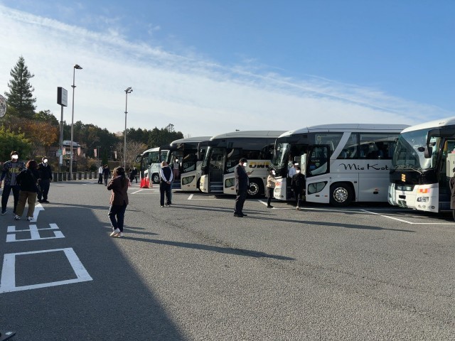 針テラスに到着し、トイレ休憩を終え、宗陶苑に向かいます。バスの中では、音楽が続いていました。体調不良者は、いません。