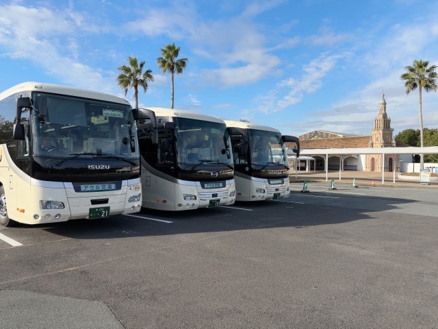寒いので、写真を撮ってから、バスで待機しています。今日は午前中5校、午後からは増えてくるとのことで、バスの中で説明しています。