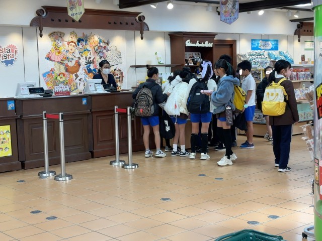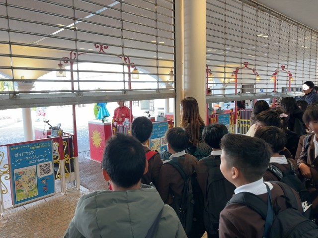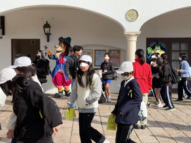 9時半ちょうどに開園しました。ゲートが上がるや待ちかねた人達は、小走りをし、お土産がなくなる心配がある人は売店に向かい、キャラクターに声をかけてもらうなど班ごとに楽しみ始めました。