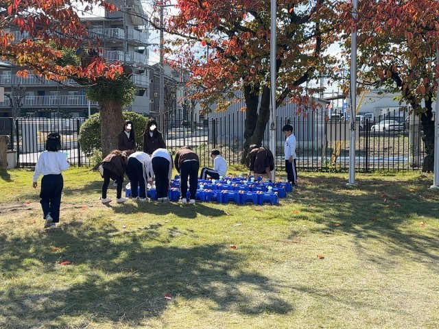 ヒアシンスの球根を植えました。大きな土の袋も力を合わせて運んでいました。