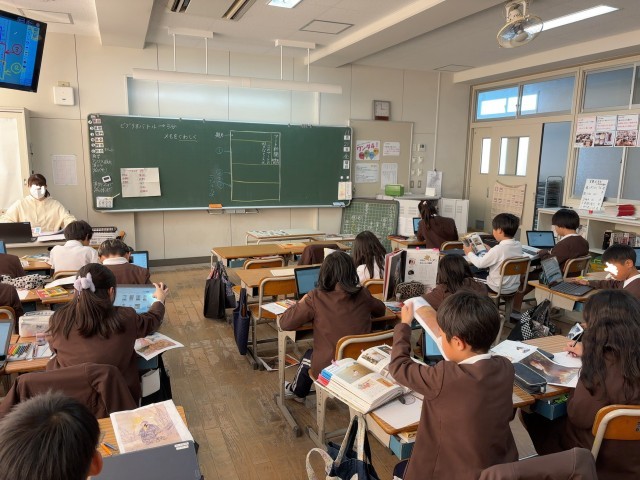 先日から図工で名画の鑑賞をしていましたが、それをベースにはがき新聞を作成しています。