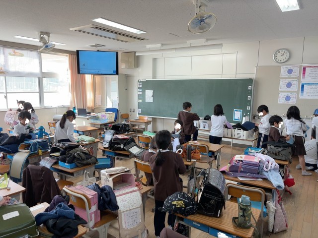 同時に送る会もあり、練習の後、帰る用意をしながら歌を歌っていました。