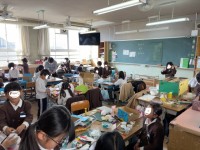 図工をしながら、九九を一人ずつ前と後ろに分かれて聞いてもらっています。3年生でた...