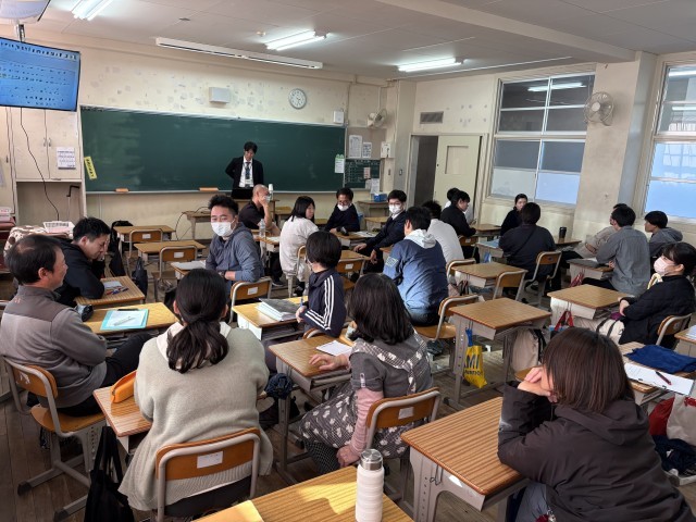 四辻特任准教授には本校の授業参観をしていただいた後、講義で本校の学力課題に対して指導助言をいただきました。